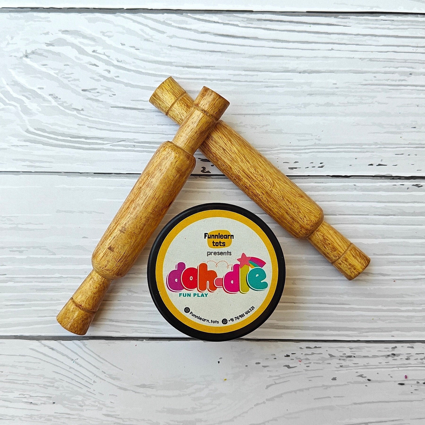 Kid friendly wooden rolling pin to play along with Dohdle play-dough.